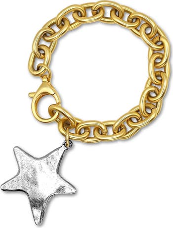 Bold and unapologetically you. Introducing our two-tone Prescott Bracelet, a striking blend of statement style and timeless charm. Featuring our Blair oval statement chain, paired with a silver textured star charm for the perfect two-tone moment. Striking on it's own, and even better layered. 12k Gold Plated Blair Chain 12k Silver Plated Star Charm Small/Medium (7.5") | Medium/Large (8") Clasp Attaches to Any Link