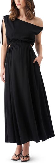 The Presley Off Shoulder Dress is all about effortless style and comfort. Made from a soft viscose-linen blend, it features an asymmetric neckline with adjustable ties at the shoulders and waist so you can style it your way. The elastic waist creates a flattering shape, while playful side cutouts add a modern edge. Side seam pockets bring a relaxed feel to this elevated, event-ready dress.