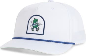 A woven rope wraps the front crown of this five-panel cap that adds cheery fun to your look with its humorous brand patch.