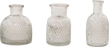 Add the 3-Piece Pressed Glass Vase Set to introduce a timeless and delicate touch to a home. This three-piece collection features a trio of clear glass vases, each showcasing a unique vintage-inspired silhouette and dimensional texture. The subtle designs and classic clear finish make them a versatile and eye-catching accent for a wide range of styles, from Farmhouse and Cottagecore to French Country and Vintage. Made of delicate pressed glass, these vases are perfect for holding small fresh floral bouquets, single stems, or for simply adding a touch of texture to a bookshelf, mantel, or end table. This set provides a beautiful and timeless way to add a touch of color and texture to a space.