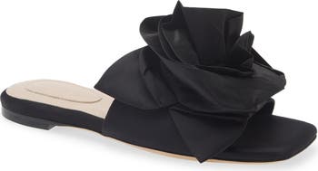 Statement-scale rosettes crop up again and again in Rocha's spring '26 celebration of girlhood in bloom—here, crowning the strap of a satin‑wrapped sandal set on a padded footbed.