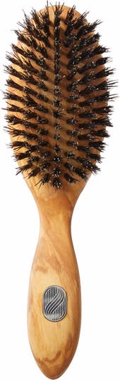Elevate your routine with a boar-bristle and olive-wood brush designed for all hair types to distribute natural oils from roots to ends for soft, shiny, nourished hair.