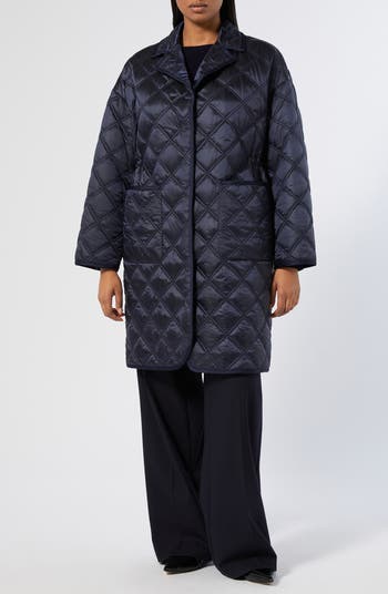An iridescent finish puts a chic spin on this water-repellent nylon box-quilted jacket framed by cinching back drawstrings and roomy patch pockets.
