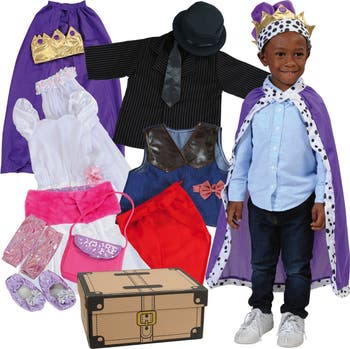 • Dress-Up Clothes Come in a Cardboard Trunk, Ready to be Decorated