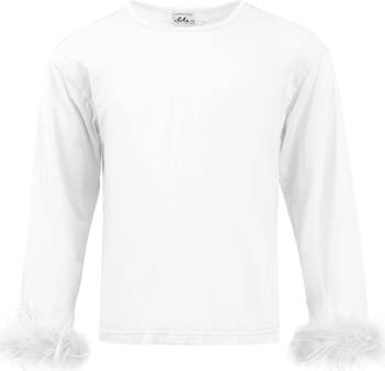 This long sleeve top brings whimsical charm to any look, adorned with soft feather detailing on the sleeves. Available in multiple colors, allowing for versatile styling options