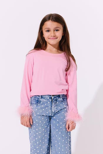This long sleeve top brings whimsical charm to any look, adorned with soft feather detailing on the sleeves. Available in multiple colors, allowing for versatile styling options