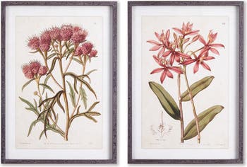 This pair of pink vintage floral prints celebrates the feminine nature of these delicate flowers. A soft, traditional look for bedroom, bathroom or lounge.