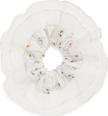 Hold your best hairstyles in place with this plissé scrunchie made from soft, frilly fabric.