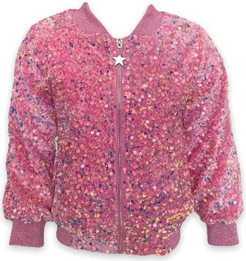 Gorgeous pink bomber jacket covered in vibrant, shimmering sequins. Perfect for adding sparkle and fun to any casual or special occasion outfit.