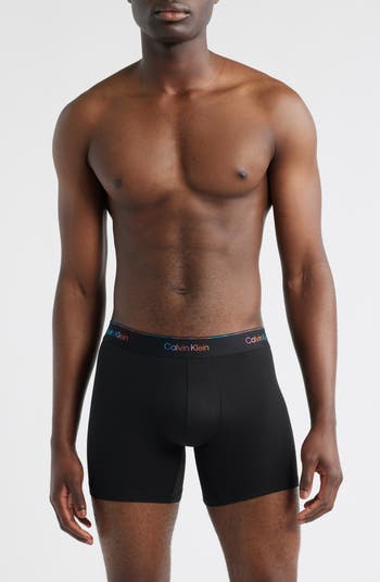 Soft, sweat-wicking microfiber brings day-to-night comfort to boxer briefs designed in basic black to make the rainbow-splashed logos pop with pride from the stretchy waistband.