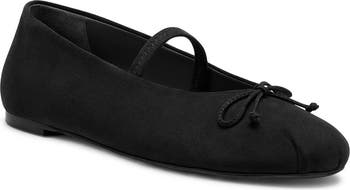 A delicate bow and elasticized mary jane strap bring charming elements to a Spanish-made ballet flat featuring a classic silhouette.
