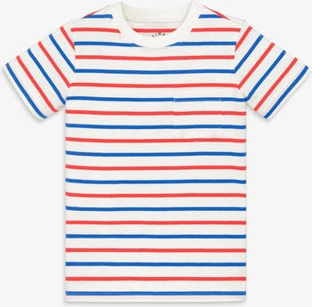 When in doubt, wear stripes—they match back to every color and are ready for every occasion. Made from 100% cotton jersey this striped tee is incredibly soft and breathable. It is pre-washed to minimize shrinkage. Shirt features a chest pocket. For care, machine wash, tumble dry. Available in sizes 2-14.