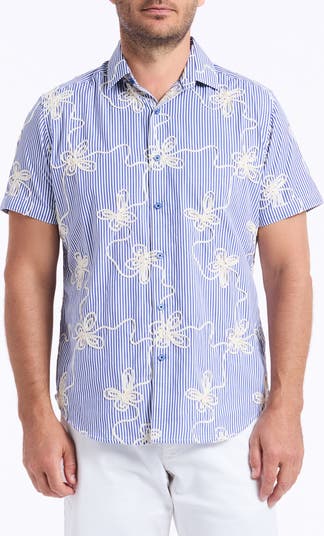 Butterflies flit all over a shirt made of breathable cotton in a fit that's perfect for leaving untucked on warm, sunny days.