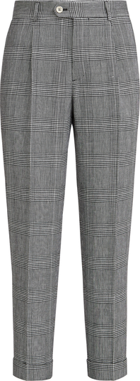 The refined cotton fabric is enhanced by the crisp, light hand of the natural linen fibers, which give the material a summery, \"rustic\" feel. The fabric’s distinctive slubbing accentuates the elegance of the Prince of Wales pattern, detailed in the season’s colors. The cotton knee-length lining provides added comfort.