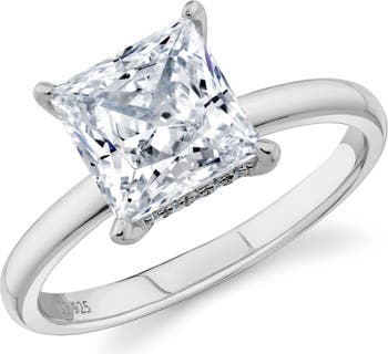 A single princess-cut cubic zirconia brings bold sparkle to this timeless ring plated in high-shine platinum or 18-karat yellow gold.