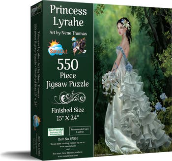 Immerse yourself in the enchanting fantasy world of Princess Lyrahe with the SunsOut 500 Piece Jigsaw Puzzle. Based on the captivating art of Nene Thomas, the puzzle comprises high-quality, eco-friendly recycled cardboard pieces, each designed with interlocking precision for worry-free assembly. Proudly manufactured in the USA, SunsOut offers a blend of beauty, craftsmanship, and sustainable practices, reflecting a commitment to quality, environmental consciousness, and support for woman-owned small businesses. Whether you're a seasoned puzzler or a beginner, you'll find satisfaction as each piece reveals more of the stunning image and brings you closer to the magic of Princess Lyrahe. Rest assured; should any issues arise with missing or damaged pieces, SunsOut’s dedicated customer service will swiftly resolve concerns. Sized at 15" x 24" when completed, the puzzle transforms into a timeless treasure, perfect for gifting or personal enjoyment. Experience the rewarding sense of achievement and hours of entertainment as you step into a world of fantasy and beauty with the Princess Lyrahe 500 Piece Jigsaw Puzzle.