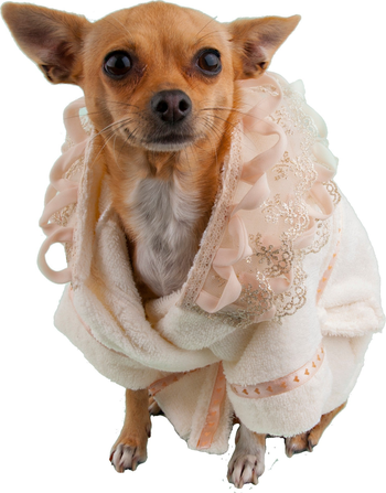 Wrap up your little principessa like Lady Gaga's beloved dog Miss Asia! | Treat your furry royalty to a spa-like experience with Moshiqa's Principessa Bathrobe! Inspired by fairy tales, this luxurious kimono-style bathrobe features a full ruffle lace hood, satin ribbon accents, and a soft belt.Crafted from absorbent, natural cotton toweling, it dries your pet quickly and leaves them feeling like a princess. | Baths are essential for your furry friend's hygiene and grooming, and our bathrobe makes bath time a joy. Give your pet the royal treatment and make bath time a pleasure for your beloved furbaby!