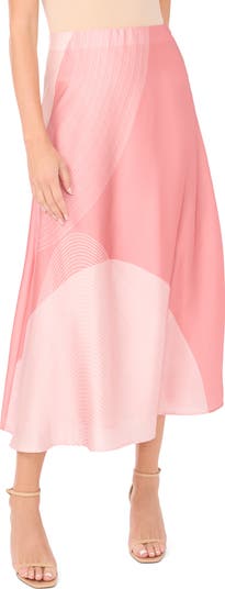 A mesmerizing print enlivens this blushing bias-cut midi skirt cut in a drapey A-line silhouette.
