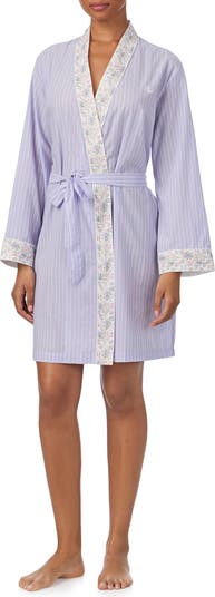 Dainty florals bloom in a pretty way across the front of this lightweight robe made from a breathable cotton blend.