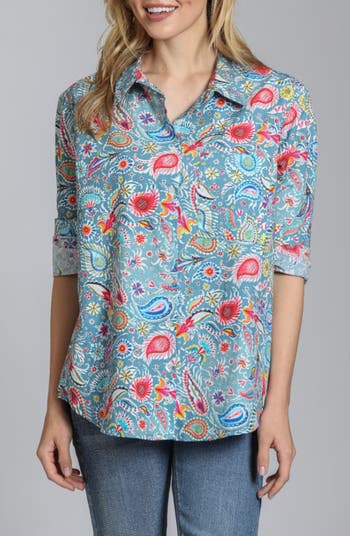 Punch-up your look for the new season in this slightly oversized cotton button-up shirt crafted with a curved hem you can leave untucked for an easygoing look.