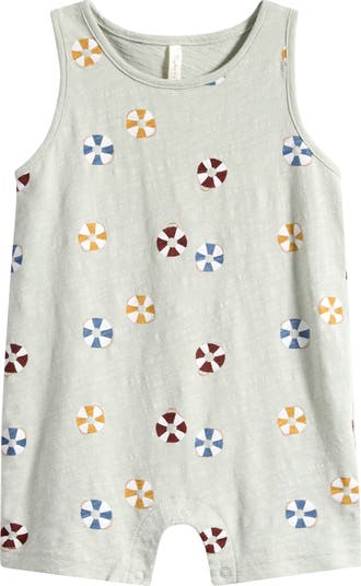 A sweet print charms this sleeveless romper made from breathable cotton so it can be worn all day long on warm days.