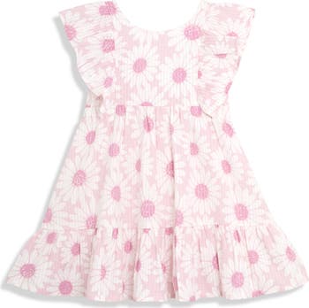 Baby's style will bloom in this cotton seersucker sundress detailed with flutter sleeves and a ruffle hem for a frilly finish.
