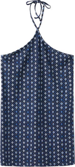An allover print enlivens this leggy-length dress meant to show off your shoulders and back.