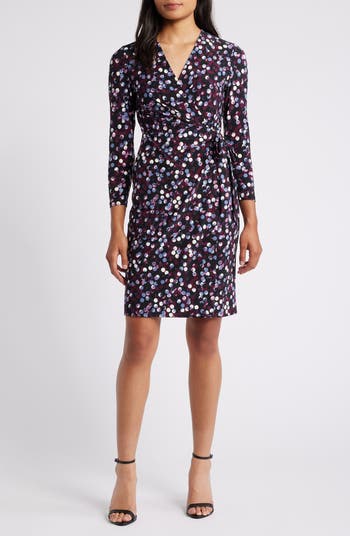 Fall for the silhouette of this desk-to-dinner wrap dress covered in a bubbly, eye-catching print.