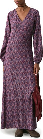 Print Long Sleeve Maxi Dress