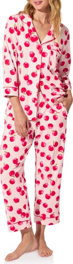 Drift off to dreamland in the luxurious comfort of these supersoft jersey pajamas made from stretch-kissed organic cotton and outlined in contrast piping.