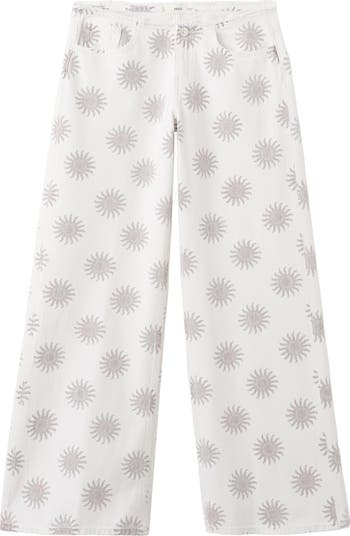 MANGO TEEN Print Low Rise Wide Leg Jeans, Alternate, color, Ecru