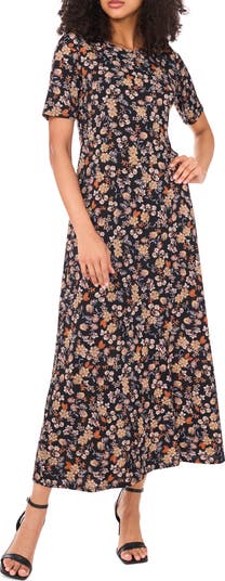 A soft stretch-jersey maxi is made with a fitted bodice and finished with a flared skirt that sways with every step.