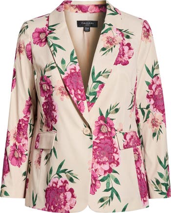 Vivid blooms romance this tailored one-button blazer that's full of polish and charm.