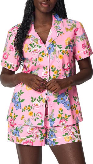 Sleeping is an art form, and you'll be a master at it in these short pajamas made from breathable organic-cotton poplin brightened with a lively floral print and framed with classic piping.