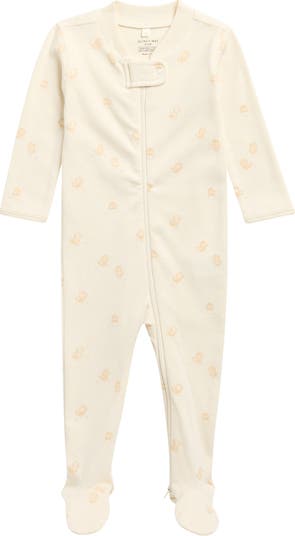 Little toes stay cozy in a soft organic-cotton footie covered in a charming print and secured with a full-length zipper for quick and easy changing.