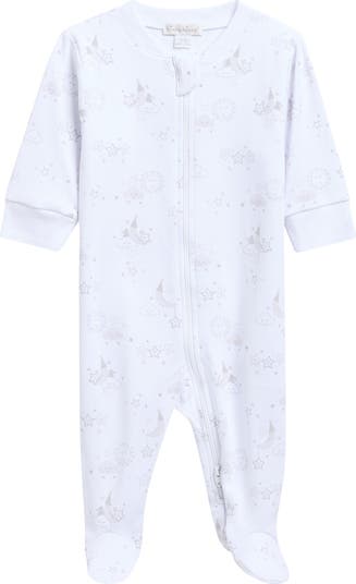 Send your babe to dreamland in a soft pima cotton footie subtly patterned in a celestial print.