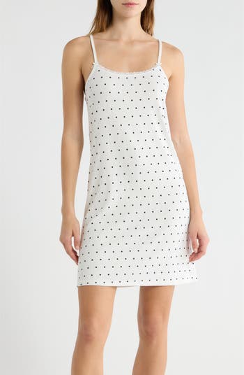 French Connection Print Pointelle Knit Chemise, Main, color, White/ Black Dot