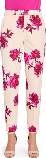 Fall for the relaxed fit and floral print of these elegant high-waisted pants crafted from a lustrous sateen.