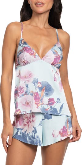 Lustrous satin gives fluid drape to these luxuriously soft pajamas featuring a relaxed-fit camisole and matching tap shorts in a serene print.