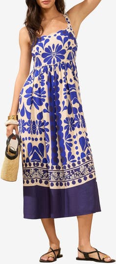 Take a sunny-day stroll in this scallop-trimmed sleeveless maxi made with a vibrant bordered print and finished with back smocking for easy movement.