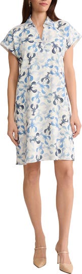 A coastal-inspired print sweetens this summery shift cut from a breezy linen blend and framed by abbreviated dolman sleeves.