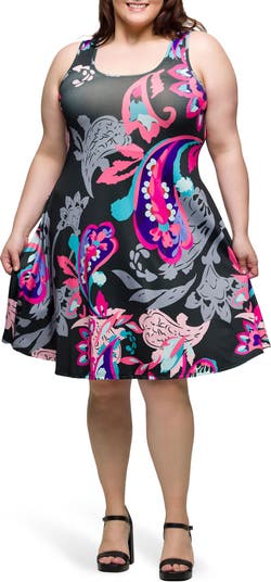 Delight in the stretchy feel of this sleeveless A-line dress covered in an enchanting print sure to catch the eye.