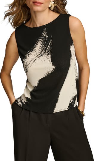 An abstract brushstroke print emboldens this sleeveless knit top that layers beautifully from day to night.