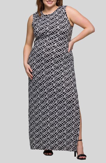 A bold print energizes this figure-skimming maxi made with comfortable stretch and finished with an airy side slit for easy movement.