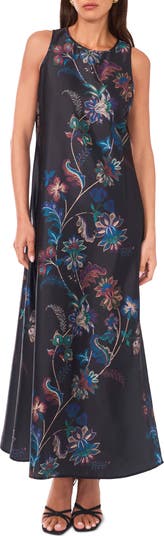 Vivid blooms romance this lightweight sleeveless maxi made in a flowy silhouette with accented with a leg-baring side slit.