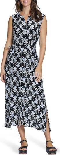 A silky cupro blend lets you float through your day in this sleeveless shirtdress that's cinched with a fabric belt.