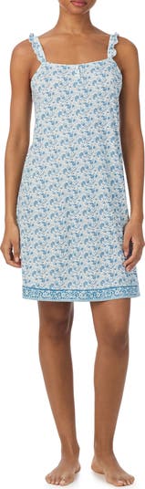 A pretty print and frilly straps will have you looking polished as you drift off to dreamland in this lightweight nightgown fashioned from a supersoft cotton blend.