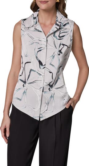 A swirling abstract print emboldens this lightweight sleeveless shirt cut with a sharp asymmetric hem.