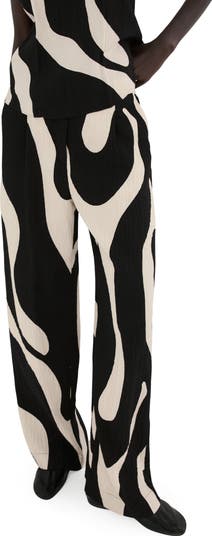 A modern print enhances the statement-making vibes of these flat-front pants cut in a straight-leg silhouette.