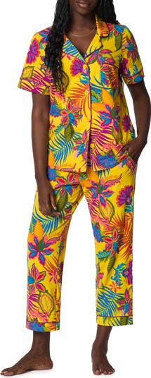 Print Stretch Organic Cotton Jersey Crop Pajamas